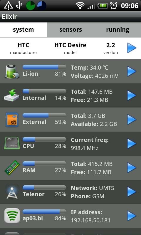 Многим пользователям девайсов на Android практически все равно, чем занимается их устройство. Главное, чтобы работало исправно, да нужные приложения работали. Но некоторым просто до потери сна и аппетита охота знать, чем живет эта коробочка. Специально для них рекомендуется установить виджет, со скромным названием Elixir для Android. Это приложение сообщит вам множество информации о вашей системе, даже ту, которую вы не ожидали увидеть.