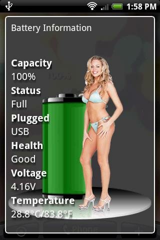 Вам когда-нибудь приходило в голову, что время полной разрядки аккумулятора устройства на Android можно ждать с большим нетерпением. Да, да, именно полной разрядки, когда полоска заряда практически исчезнет, а виной всему Free Battery Widget Jenna & Free Battery Widget Aria. С установкой этого приложения, рядом с вашей батареей появится прекрасная девушка, которая будет постепенно терять одежду.